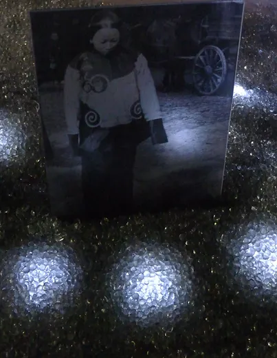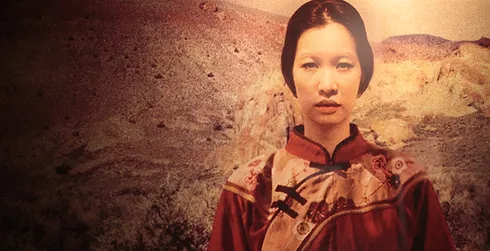 右邊迎接你的是一位「迷失」的華人女性,她無助地站在天寬地廣的內華達州鐵路現場,你帶著一顆忐忑的心進入「鏡子宮殿」尋找她的蹤跡。玻光閃閃,只聽到她的呢喃,你進入了這段曲折的歷史,徘徊再三,不忍離去。